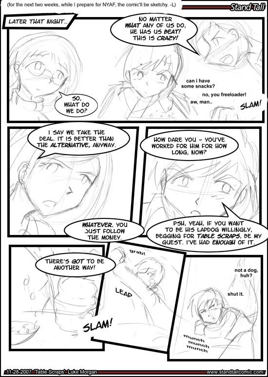 Getting ready for NY Anime Fest, which will be fun and all (NYC Shopping and Foods = Yay!), but now I've got all sorts of crap to get out of the way so we can get to the con. Hence, the comic'll be kinda 'phoned in' for the next two weeks. I'll try my hardest, folks. -_- Stay tuned!